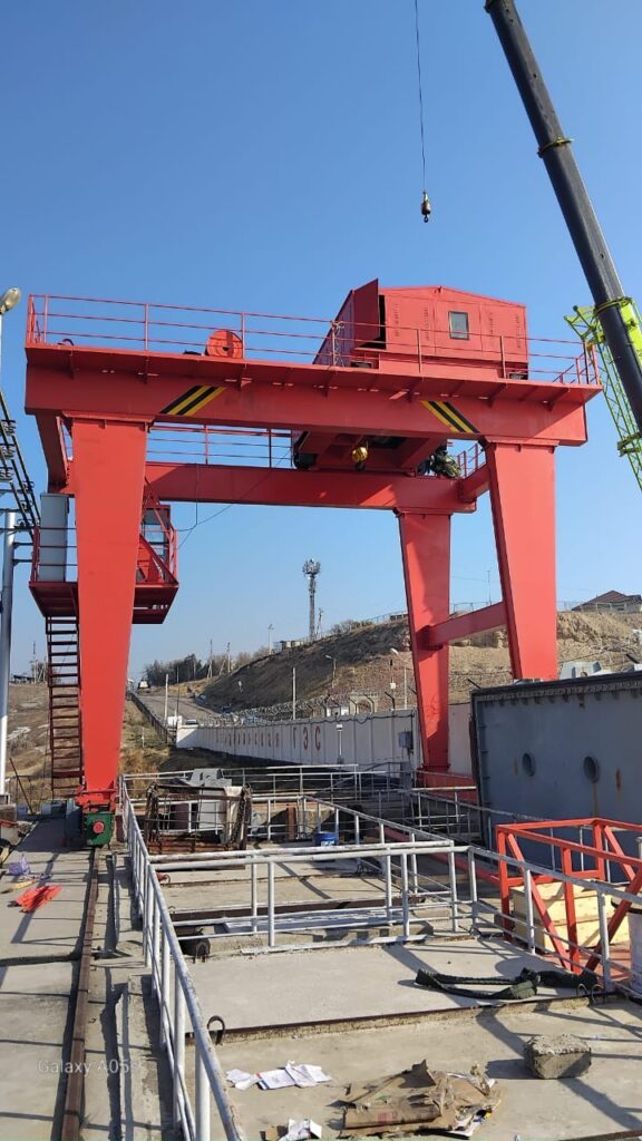 — жоғарғы бьефке арналған, жүк көтеру операцияларын орындауға, гидротехникалық құрылыстарды техникалық қызмет көрсетуге және жөндеу жұмыстарын қауіпсіз жүргізуді қамтамасыз етуге арналған қақпақты кран (козловой кран).