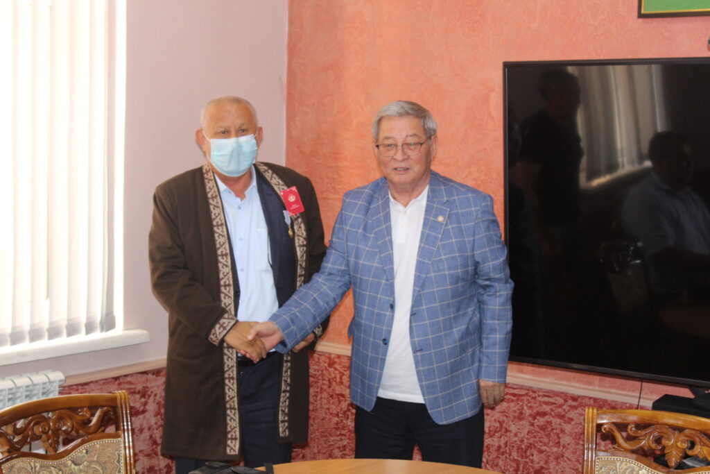 Кездесу барысында Оразбек Тельбайұлы «Шардара су электр станциясы» АҚ кәсіподағы комитетін ұзақ жылдар басқарған Әлмахан Амановтың зейнет жасына толуына орай омырауына Қазақстан Республикасы Энергетика министрлігінің «Еңбек ардагері» медалін тағып, иығына шапан жапты.